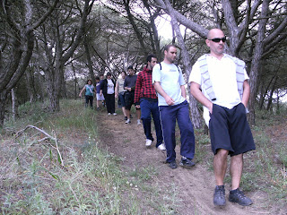 O ponto de encontro foi a Escola Básica nº1 de Vila Nova de Caparica, situada na Rua Pedro Álvares Cabral (N 38° 64’ 49.39”; W 9° 20’ 53.63”), e daí partiu um grupo de onze pessoas que, alegremente e com um sorriso no rosto, seguiu em direcção à Quinta dos Ingleses, onde nos foi possível observar um rico património quer natural quer edificado mas, que infelizmente e por motivos de abandono, não se encontra nas melhores condições. Motivo este, que propiciou um aceso debate entre os participantes, onde surgiram de imediato propostas de reabilitação do espaço.